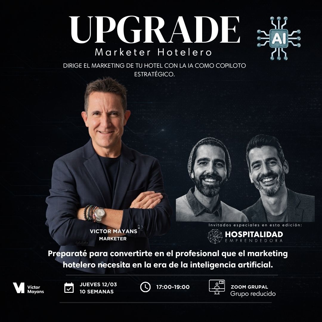 UPGRADE te convierte en un profesional capaz de dirigir el marketing de un hotel con la IA como copiloto estratégico, no como herramienta pasajera.
